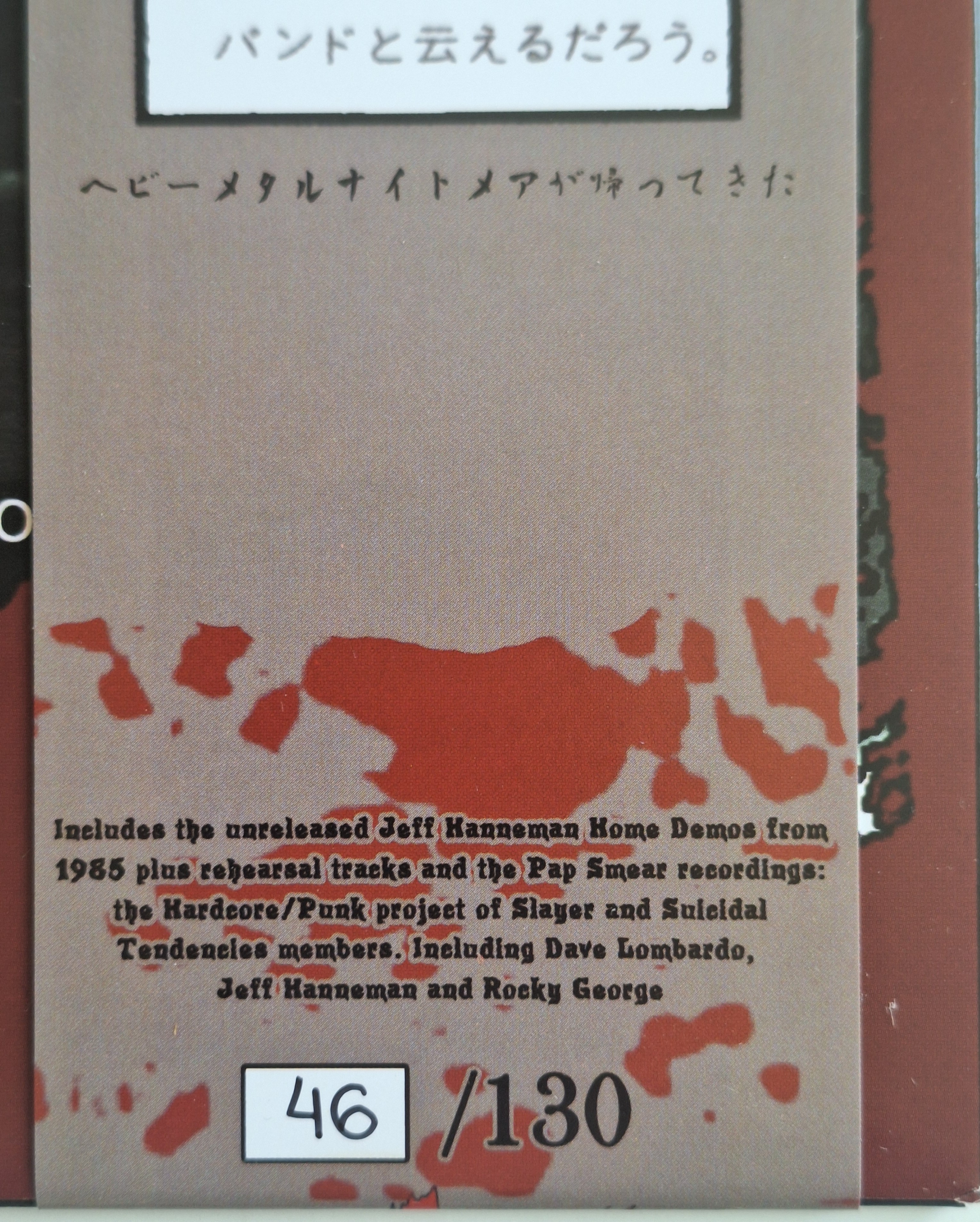 Includes the unreleased Jeff Hanneman home demo's from 1985 plus rehearsal tracks, and the Pap Smear recordings: The Hardcore/Punk project of Slayer and Suicidal Tendencies members, including Dave Lombardo, Jeff Hanneman and Rocky George.