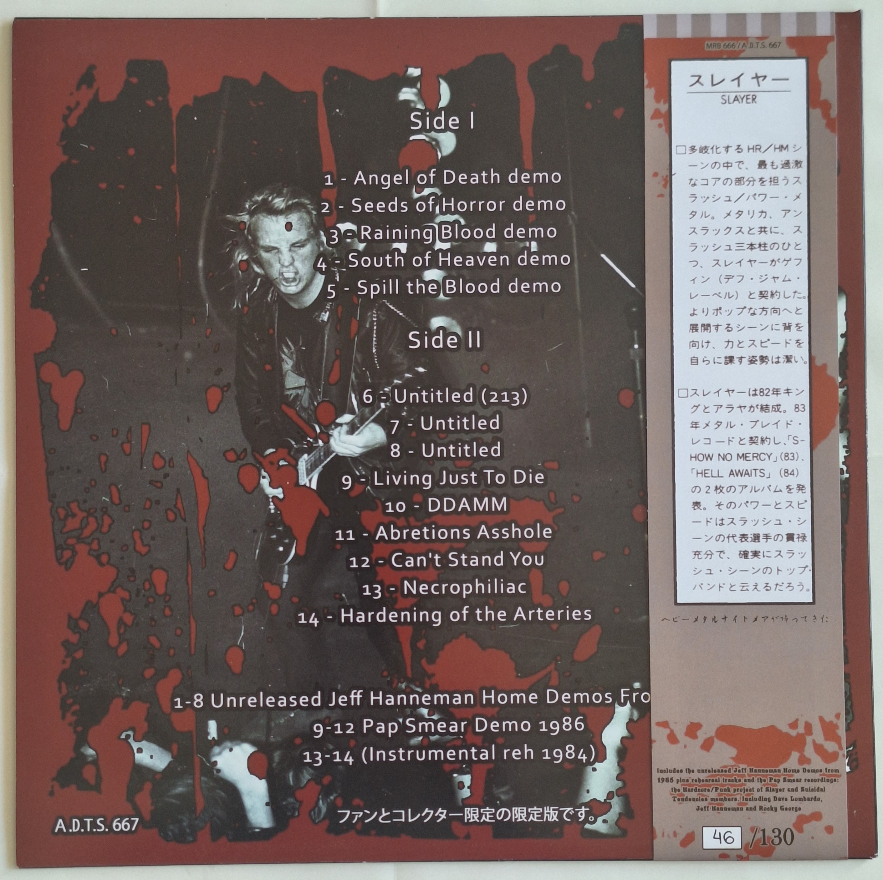 Slayer Spill The Blood LP Demo Recordings, limited to 130 numbered copies! Issued with OBI and printed insert.
